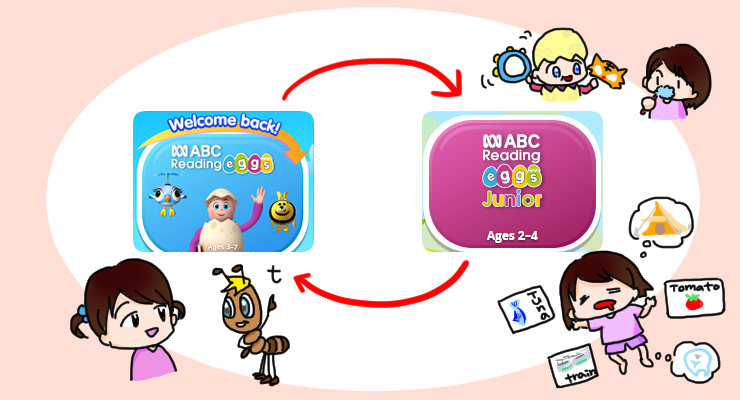 Reading Eggsには「ABC」と「Junior」がありますが、年齢やレベルに応じて使い分けるのではなく、併用するのが断然おすすめです。